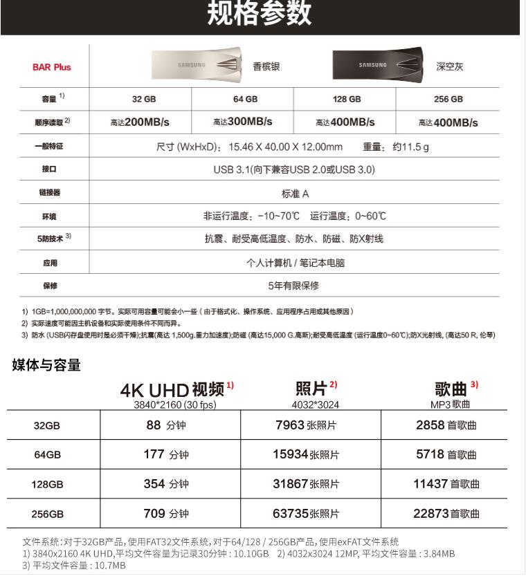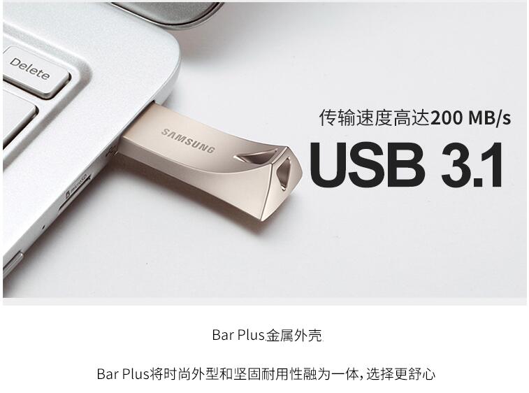 三星Bar PLUS金屬U盤(pán)32G閃存盤(pán)USB3.1 可定制LOGO圖案讀速200MB/s