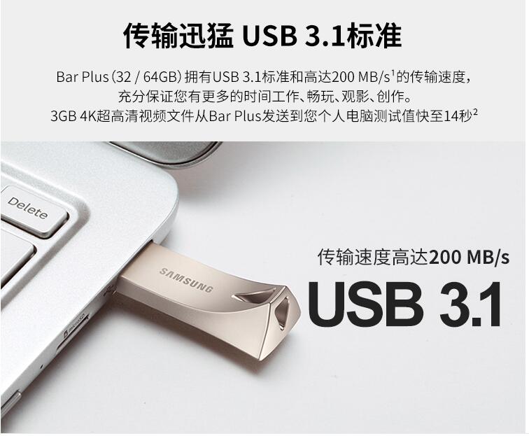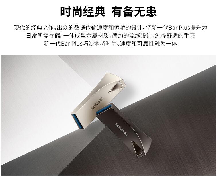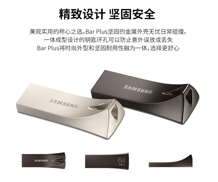 三星優(yōu)盤(pán)64GB USB3.1 U盤(pán) BAR升級版+高速汽車(chē)載歌曲金屬外殼精致