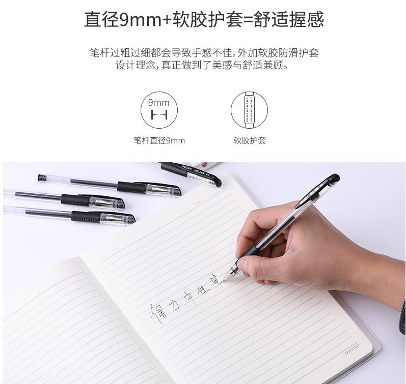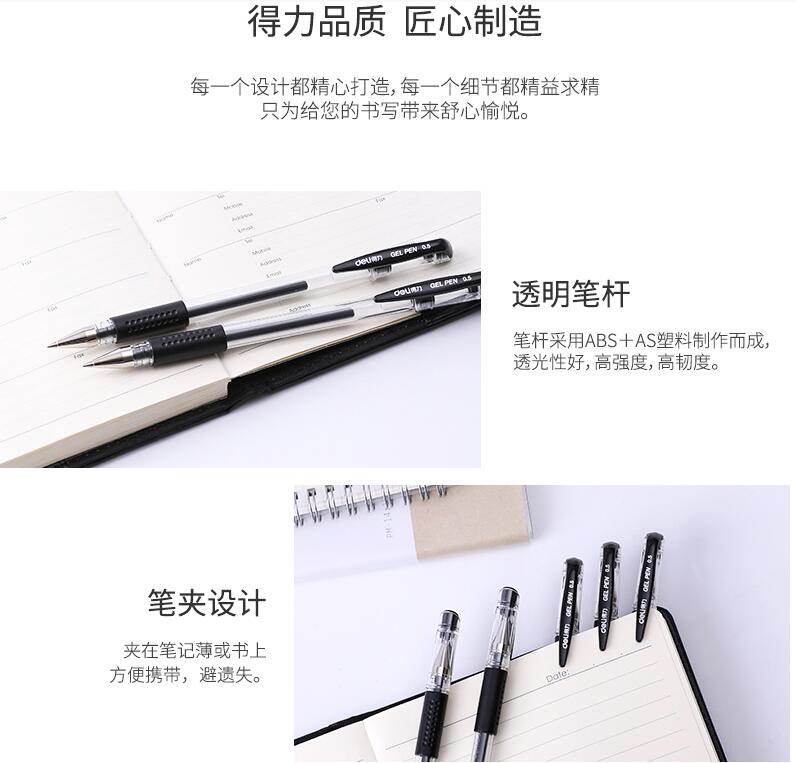 得力文具33140中性筆學(xué)生考試量販式黑筆水筆碳素筆0.5mm辦公用品包郵書(shū)寫(xiě)工具60支裝