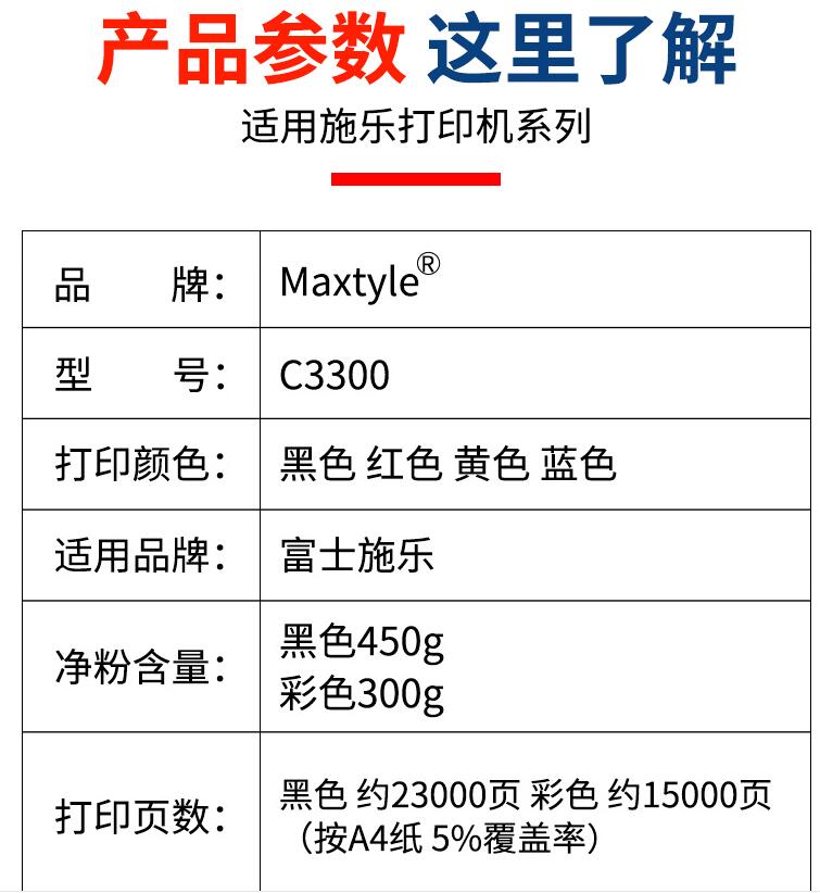 Maxtyle富士施樂(lè )Xerox C3300 C3360 C2250 C7425 C7428 C7435碳粉彩色復印機墨粉打印機粉盒通用易加粉硒鼓粉