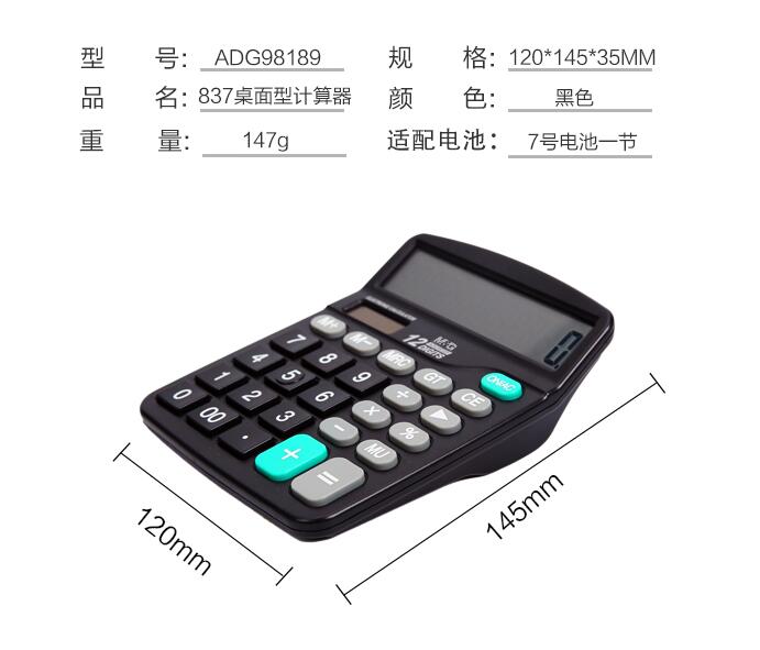 晨光文具837太陽(yáng)能計算器商務(wù)型辦公用會(huì )計專(zhuān)用科學(xué)商用學(xué)生考試大屏大按鍵計算機大號小號便攜雙電源