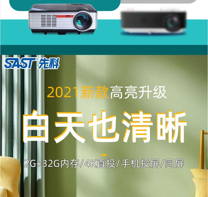 先科投影儀家用臥室小型 便攜4k超高清一體機可連手機投影電視高清1080p智能家庭影院辦公會(huì )議培訓教學(xué)投影機