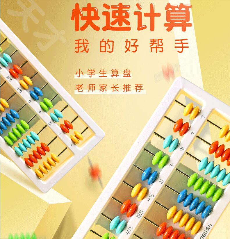 得力算盤(pán)小學(xué)生珠心算幼兒園5珠7珠益智玩具小學(xué)生二年級專(zhuān)用兒童算數加減法算術(shù)計數器學(xué)具盒一年級珠算算盤(pán)